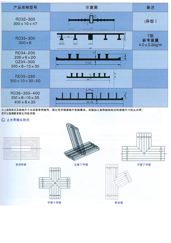 橡膠止水帶尺寸規(guī)格;單位(mm);寬度×厚度