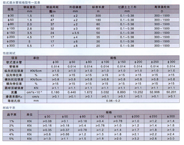 軟式透水管規(guī)格型號一覽表